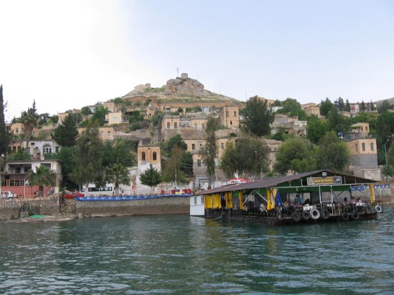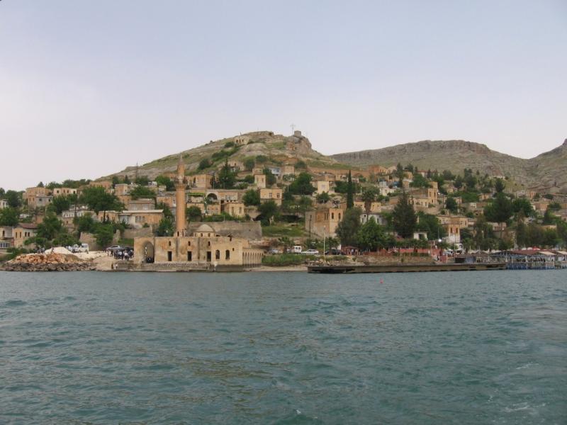 Önce tekneyle Halfeti'nin önünden geçmeye başlıyoruz. 2-3 kattan oluşan Halfeti evleri birbirinin önünü hiç kesmiyor. Bu mimari güzellikleri Ermeni ustaları yapmış. Fırat’a hâkim yamaç üzerinde yapılan bütün evlerin ön cephesi nehre bakıyor ve birbirinin önünü kesmeyecek şekilde dizilmişler.