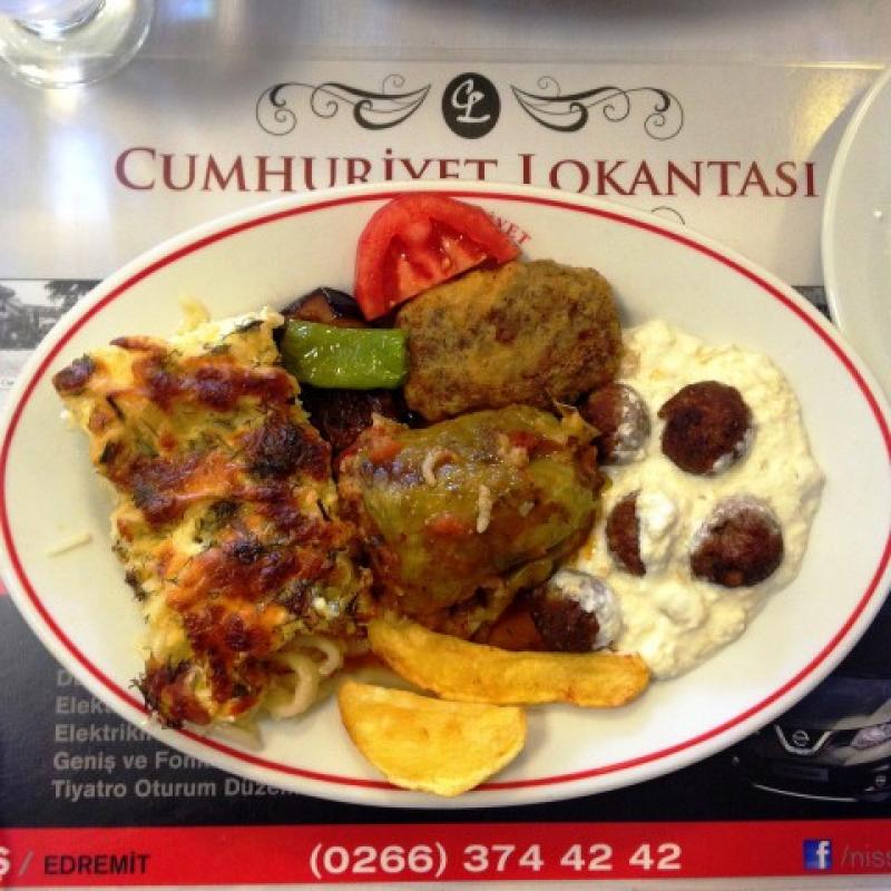 Edremit’te Cumhuriyet Lokantası’na uğruyoruz. ECCO Genel Müdürü Deniz Erda Bey’in yediği yemeklere dikkat kesiliyorum, burayı bilen kişi olarak kendisinden referans alarak alarak tatlı siparişi de veriyorum. Deniz Bey aynı zamanda sıkı biri bisiklet sporcusu. Oldukça köklü olan mekân mutlaka ziyaret edilmeli. Kesinlikle pişman olmazsınız.