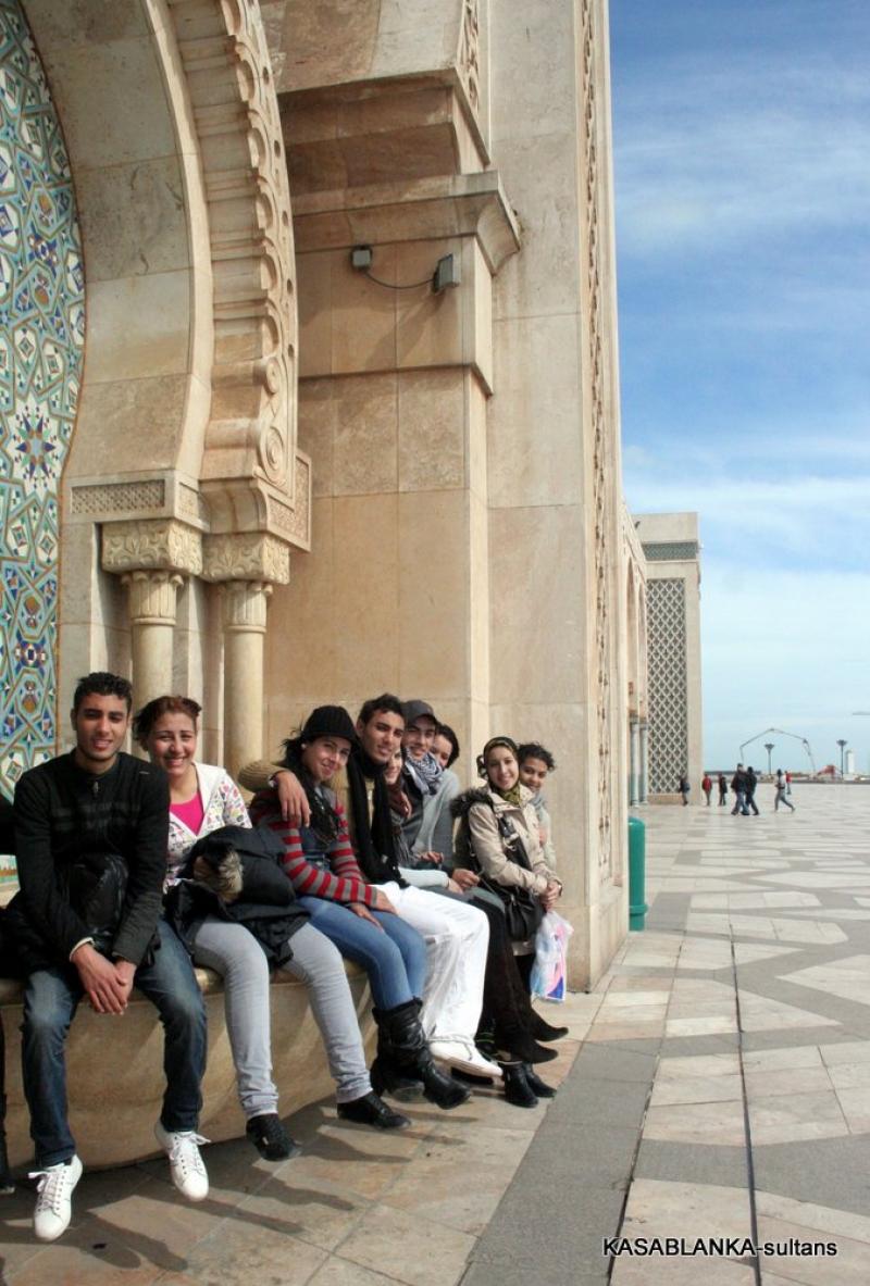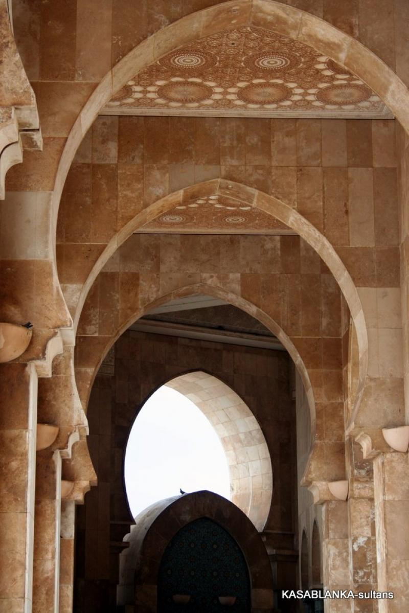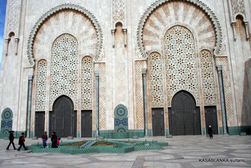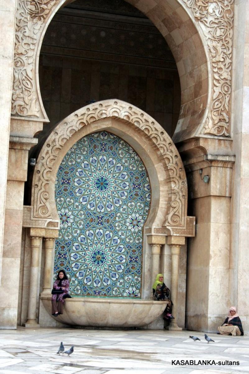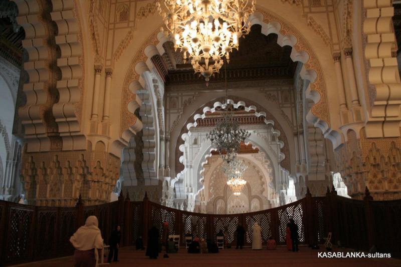 Ama bu muhteşem camiye öyle elinizi kolunuzu sallaya sallaya giremiyorsunuz. Malum ibadet için yalnızca Müslümanlar girebilir. Yabancılar ise rehber eşliğinde izin verilen saatlerde camiyi gezebilir. Ayrıca kadınların sadece kadınlar girişinden kadınlar mahfiline girmesine izin veriliyor. Oradaki tahta işlemeler arasından camiyi görebiliyorsunuz. Buna rağmen 2. Hasan Camiinin gerçekten çok büyük, güzel ve oldukça incelikli, zarif bir mimari yapı olduğunu söyleyebilirim. İçi tavanından tabanına bir sürü inceliklerle bezenmiş ki dış yüzeyi de aynı oranda inceliklerden nasibini almış.