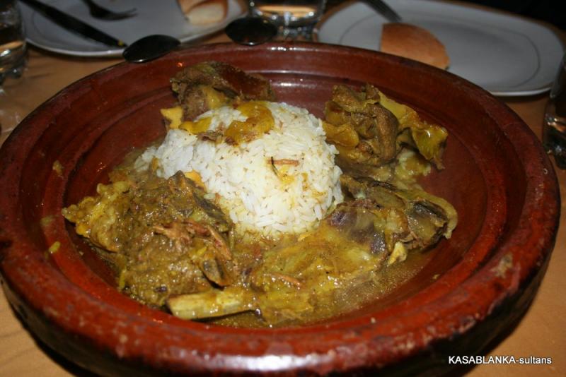Hayır denemeyecek bir başka şey de iyi bir akşam yemeğidir. Tabiî ki Fas’ta bu geleneksel Tajin olacaktır. Fas mutfağı diğer Kuzey Afrika mutfakları gibi et yemekleri ve pilav gibi iki ana unsura dayanır. Toprak bir kapta pişirilmiş güvece yakın bir lezzette olan Tajin, Fas mutfağının temel yemeğidir. Bol safran kullanılmış pilav, Tajinle birlikte yenir. Tajin etle ya da tavukla yapılabilir ve isteğe göre bolca sebze de kullanılabilir. İçinde yeşil zeytine de rastlarsanız şaşırmayın. Kuskus pilavı da Fas'ta karşınıza çıkan yemekler arasındadır, üzerine nohut, sebze ve et konularak yenir.