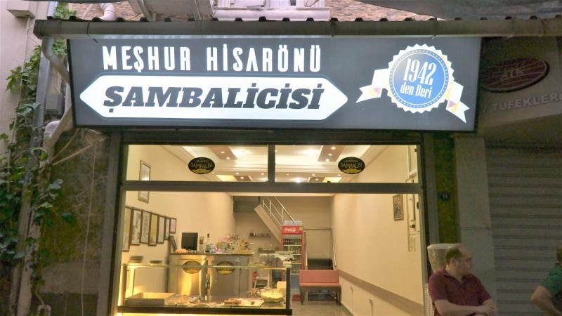 Hemen yan sokağa seyirttim. Artık akşam saatleri olduğu için kapatmış olma ihtimali hafif korkutsa da peşime fotoğrafları çekmesi için taktığım Can’ı da alarak sonunda kapanmadan meşhur Hisarönü Şambalicisi’ni buldum. 40’lı yıllarda bir arabada tepsiyle yapılan şambali, bugün üçüncü kuşak tarafından iki ayrı dükkanda Kemeraltı’nın bir gastronomik değeri olarak gururla satılıyor. Paket yaptıran yaptırana, dileyen de burada bizim gibi birkaç parçayı eline alıp yiye yiye uzaklaşıyor. Ağır bir tatlı, küçücük bir parçası bile yetiyor. Ama lezzet anlatılmaz yaşanır!