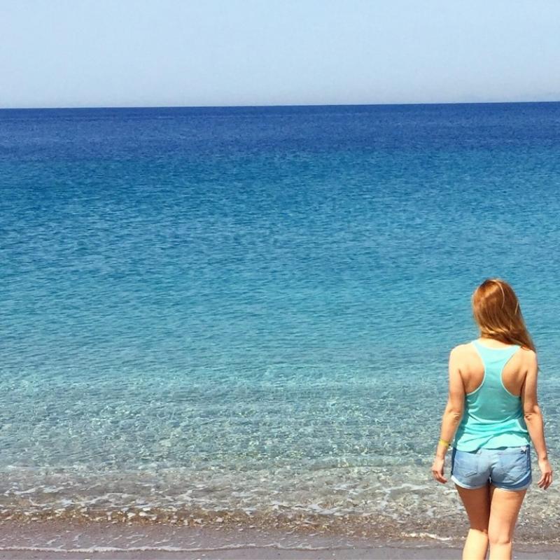 Ertesi günkü planımız araba kiralayıp Lindos'u gezmek olmasına rağmen uyanıp pırıl pırıl güneş ile karşılaşınca, bu seferlik bu kadar gezi yeter biraz da keyif deyip biralarımızı çantamıza atıp soluğu sahilde aldık. Böylesine temiz ve berrak bir sahilde Melikoş Hanım arkadaşları ile deniz ve kumun keyfini çıkarırken. Biz de sezonun ilk denizine girmiş olduk. Tabi benim bir de ahtapot ile burun buruna gelme hikayem var. Ayağımı denize atmış bir iki adım gitmiş kendimi öylece sulara bırakmak üzereyken önümden keyifle geçen bir karaltı fark ettim, önce ne olduğunu anlayamadım ama kendisi ayaklarımın dibine kadar gelip bana reverans yapınca bir ahtapot olduğunu fark ettim. Ayaklarımın dibine kadar gelip benim için dans eder gibi bir iki döndü ve aynı hızla uzaklaşıp gitti. Eğer 2 dakika daha önce denize girmiş olsaydım bu kadar keyifle anlatamayabilirdim. Neyse ki birbirimize yapışmadan sadece bakışarak atlattık. Keyif, huzur, tarih, nefis yiyecekler ve bol uzolu bir tatil düşünüyorsanız Rodos kesinlikle biçilmiş kaftan.
