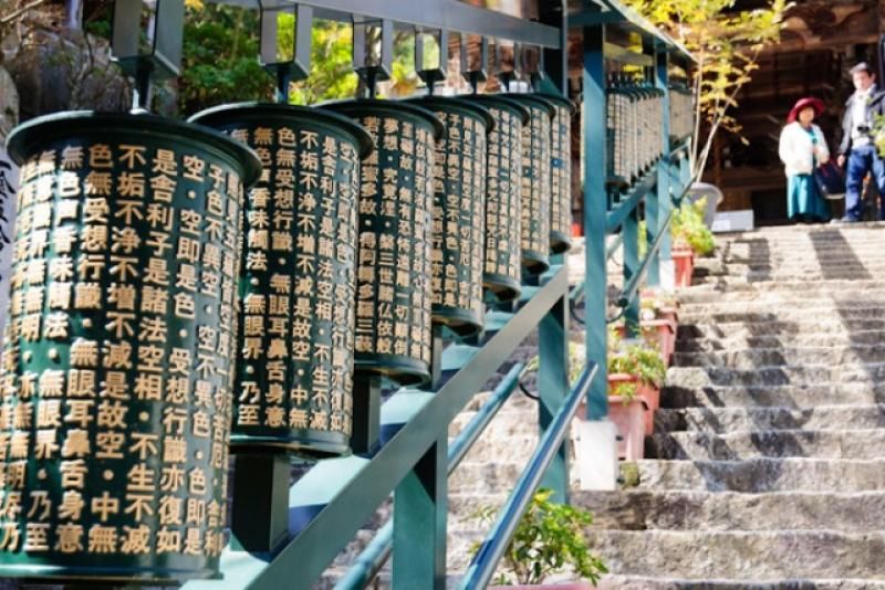 Bu merdivenleri tırmanırken karşınıza çıkacak dua çarklarını çevirerek, Budist tapınaklarının önemli ritüellerinden birini gerçekleştirebilirsiniz. İnanışa göre bu çarkları çevirmek, üstünde Japonca olarak yazılan duaları okumakla aynı anlama geliyor.