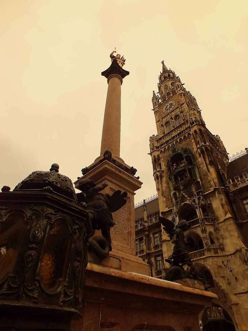 Artık biraz da merkeze dönelim. Kapak resminde de görmüş olduğunuz Marienplatz'a bakan Münih Belediye Binası sanırım turistlerce şehirde en çok fotoğrafı çekilen bina. 1874 yılından itibaren kullanılmaya başlanmış. Özellikle gece ortamında bir de kar yağıyorsa çok güzel çekimler yapabilirsiniz.