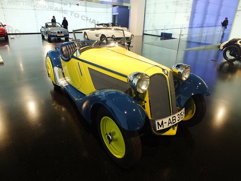 Şirket, 1913 yılında Münih kentinde sadece uçak motoru üretmek için kurulmuş bu yüzden parçalı amblemin mavi kısmı gökyüzünü beyaz kısmı da uçak pervanesini temsil ediyormuş. 1929 yılında otomobil üretimine girmiş. Yanlış anlaşılmasın uçak motoru üretimini de bırakmamışlar. Müzeyi gezerken 1944 model uçak motorunu da görebilirsiniz.
