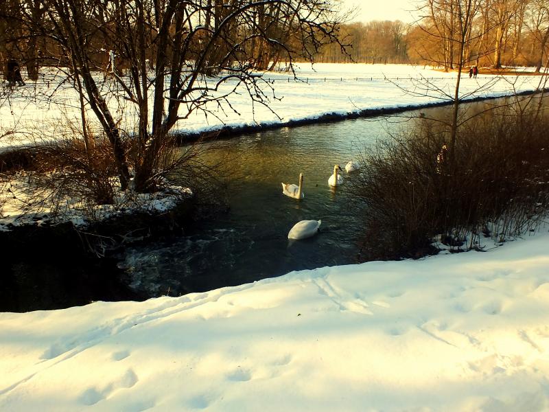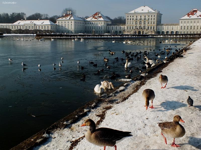 Saraydaki tüm göletler kanallar Münih'i bölen İsar Nehri’nden besleniyor. Fotoğraflarda gördüğünüz göletler kuşlar için doğal yaşam alanı gibi. Burada kuğular ve ördekler tam bir özgürlüğe sahip. İnsanlardan korkmadıkları için size çok güzel pozlar da veriyorlar.