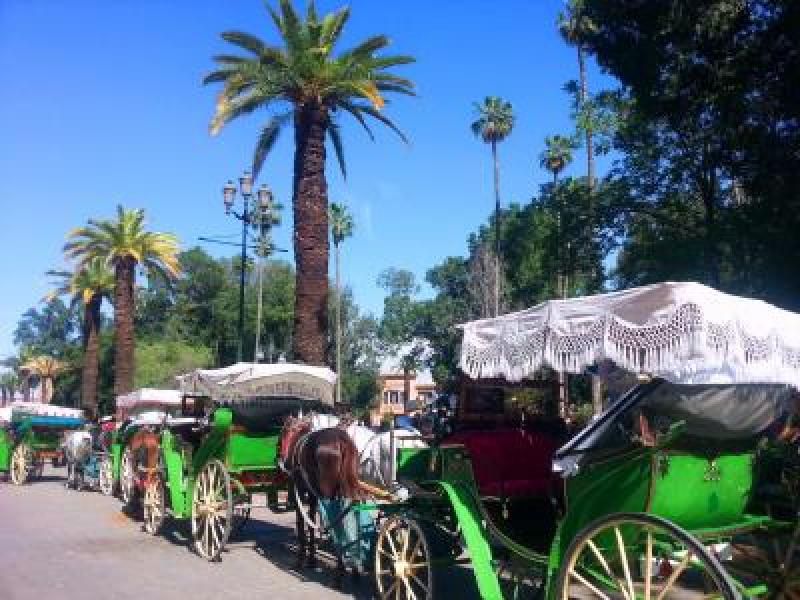 Marakeş, Fas’ın 4 kraliyet şehrinden birisidir. Binaların ve toprağın renginden dolayı “Kızıl Şehir” olarak da anılmaktadır. Şehre girer girmez hurma ağaçları karşılar sizi… İlk olarak; yeşil bitki örtüsü, trafikte otomobillerle beraber ilerleyen nostaljik faytonlar ile motor kullanan çarşaflı kadın sürücülerin çokluğu dikkatimizi çekiyor. Marakeş, Fas’ın en turistik bölgesidir.