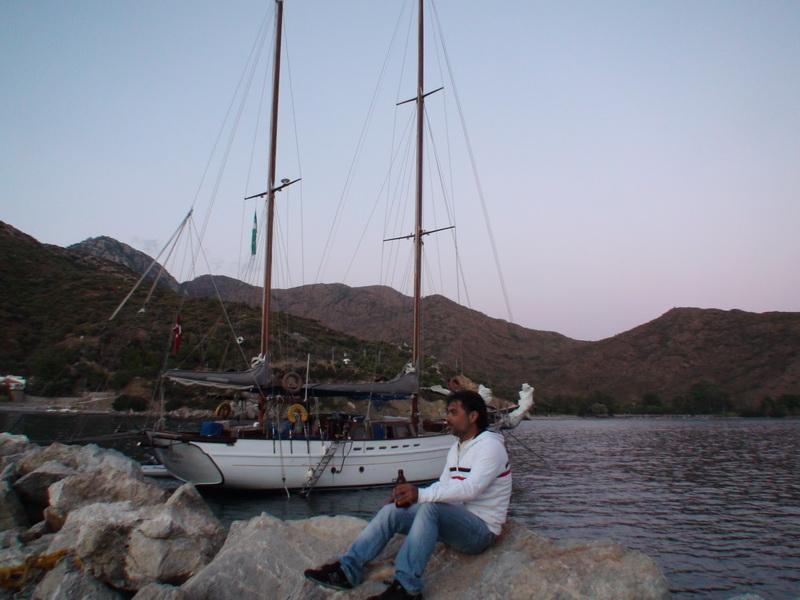 Şansımıza bugün hava da çok güzel : ) Teknede kahvaltıyı daha bitirmeden Knidos’a demir attik : ) Mehmet Kaptan’ın yardımcıları bizi bot ile Knidos iskelesine çıkardılar. İlk işimiz Mehmet Kaptan’a da söz verdiğimiz gibi tekneyi karadan fotoğraflamak oldu.