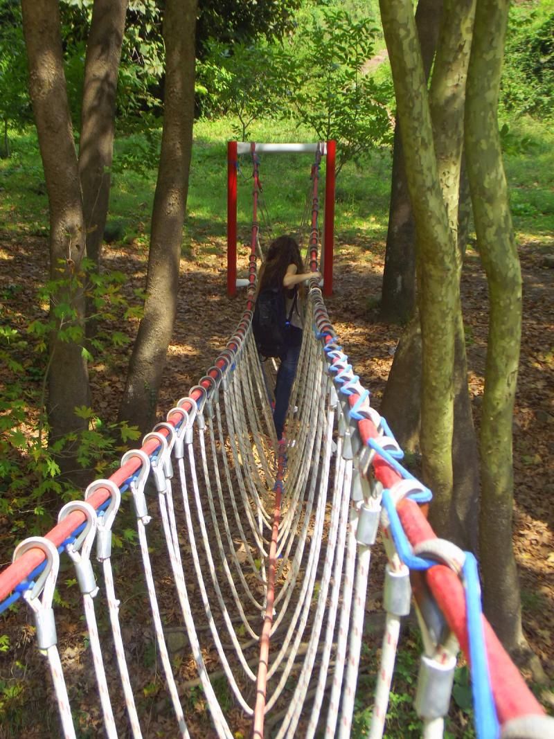 Derenin derinleştiği yerlere, asfalttan tepe eteklerine geçiş için bazı yerlere de ip köprüler asılmış. Yorucu ama eğlenceli bir geçiş sağlıyor.