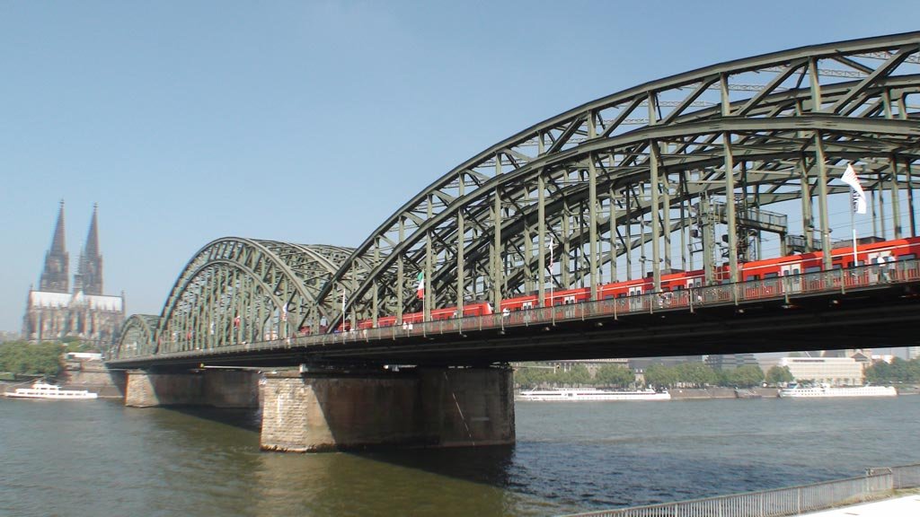 Köln, Rhein nehrinin iki yakasına kurulmuş bir şehir dolayısı ile toplam 7 köprü şehrin 2 yakasını birbirine bağlıyor. Köln’de ulaşım çok düzenli. Köln tren istasyonundan günde en az 1.000 tren geçiyor.