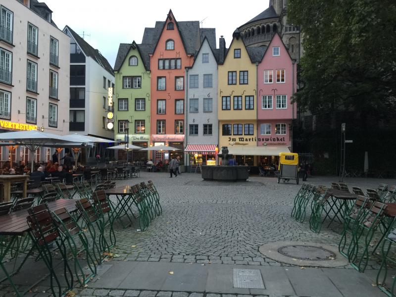 Köln'de bulunmaktan en keyif aldığım yer Eski Kent Meydanı (Old Town). Köln Katedrali'nden yürüyerek ulaşabileceğiniz bu bölge tam Ren Nehri'nin kenarında kalıyor. Burada bulunan sevimli ve renkli binalar insanın içini açıyor. Bizim gibi arada gezmeye mola vermek isteyenler için de kafe-restoran bakımından da tam bir cennet. Metrelik bira içmeden dönmeyin :)