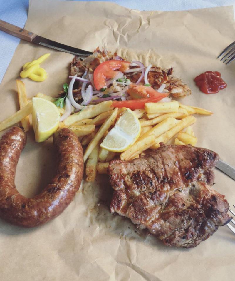 İşin en heyecanlı kısmı ise akşam yemekleri. Merkezde yer alan tavernaların birçoğu zamanda yolculuk yapıyormuşsunuz gibi hissetmenizi sağlıyor. Duvardaki resimler, fotoğraflar, içerde çalan müzikler, masalar ve ahşap ağırlıklı dekorasyon. Tavernaların birçoğu bu ambiyansa sahip ve aynı sokak üzerinde yer alıyor. Bir kısmı da sahil boyunca yan yana dizilmiş durumda. Gönlümü fetheden tavernalara örnek olarak gün içindeki yemek molasına Καναβίδης, akşam yemeğine ise Loukoulos verilebilir. Fiyatların uygunluğu ve yemeklerin lezzetini ben anlatmadan siz gidip tecrübe etmelisiniz. Καναβίδης’ın köfte, tzatziki ve parça etlerini, Loukoulos’un da deniz mahsüllerini ve mezelerini özellikle tavsiye ediyorum. Tatlı onlardan ve yine büyük bir porsiyonlar şeklinde. Bir de gece çorbası sevenlere ilginç ama tanıdık bir öneri ise paça, işkembe, tavuk suyu çorbası yapan Ta Matakia. Mekanların isimleri, sahipleri, yerleri değişiyor ancak fiyatların uygun ve porsiyonların büyük oluşu hep aynı.