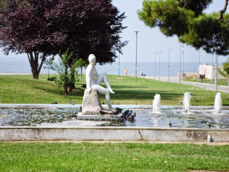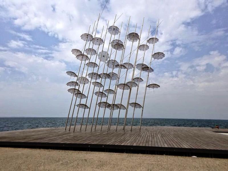 Beyaz Kule'ye veda edip, yaz sıcağından kordon boyunca dolaşmamıza devam ettik. Sahil şeridinde aralıklarla heykeller bulunmakta. Tabii ki en ilginçleri Büyük İskender Heykeli ve Selanik şemsiyeleri.