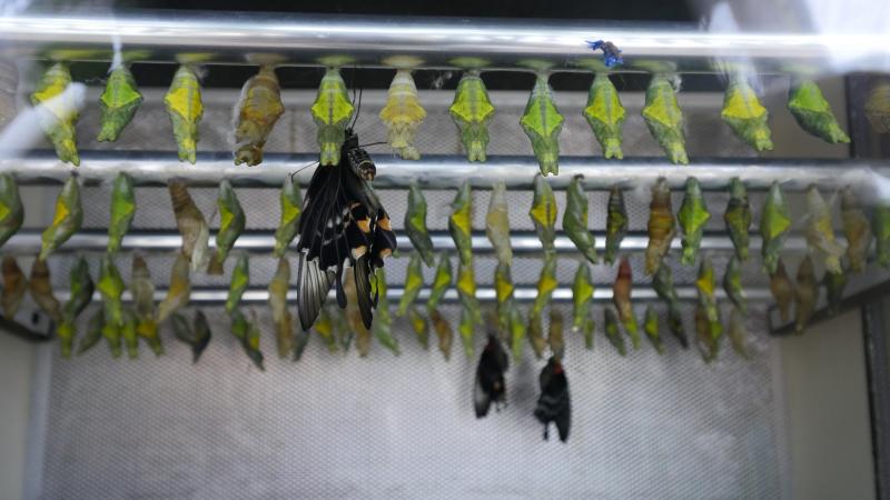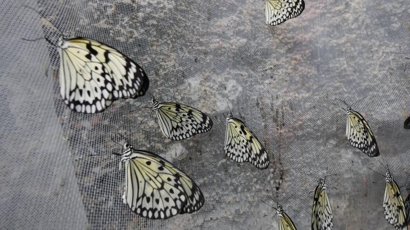 Buraya pupalar çoğunlukla Kenya ve Filipinler’den getiriliyor. Gelen pupalar cam içinde bir alanda bir taraflarından demir bir çubuğa yapıştırılıyor. Çünkü doğal ortamlarında da pupalar kendilerini ağaç dallarına sabitliyorlarmış.