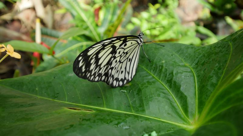 Leopard Lacewing, Paper Kite, Great Mormon, Clipper, Cruiser, Common Rose, Autumn Leaf, Dark Blue Tiger, Orange Migrant, King Crow, Baykuş Kelbeği, Glasswinged, Common Archduke, Blue Morpho ve Atlas Güvesi olmak üzere toplam 15 türde kelebek bahçenin bu doğala en yakın ortamında yaşıyor. Benim için etkileyici olan Glasswinged ve Blue Morpho türündeki kelebekleri görmek oldu. Gerçekten inanılmaz zariflerdi.
