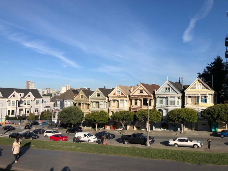 Şimdi fotoğraflarda ve kartpostallarda gördüğümüz, benim de görmeyi çok istediğim yine evleri ile ünlü bir bölgeye gidiyoruz. Kentin tepelerinden birinde, Hayes ve Steiner caddelerinin kesiştiği köşede, güzel yeşil bir parkın karşısına dizilmiş 7 değişik renlere boyanmış yedi ev. Kiminin Seven Sisters (7 Kız kardeş) kiminin de The Painted Ladies (Boyalı Hanımlar) dediği Viktorya Devri mimarisi tarzı tarihi evler. İllaki görülmeli diyorum, ben fotoğraf çekmeye doyamadım.
