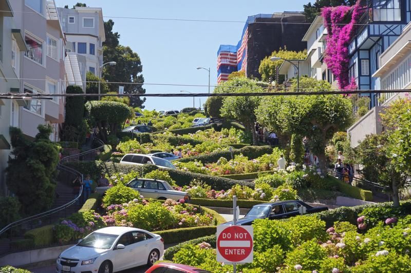 Eminim siz de fotoğraflarda görmüşsünüzdür, San Francisco denince benim gözümün önüne yokuşlu yollar gelir, önce dik bir yokuş, sonra düzelen ve tekrar yokuş olan yollar. Daha önce de söylediğim gibi şehir zaten tepeler üzerine kurulmuş. En ünlü olan ve fotoğrafçılara daima konu olmuş olan, tepeden başlayarak, bir alt dört yol ağzına kadar döne döne, ‘saç tokası’ dedikleri, dönüşleri oldukça dik, sekiz keskin virajla inen yol ise meşhur Lombard Street. Bu yoldan illaki yokuş aşağı arabayla ya da yürüyerek inin, inerken bol bol fotoğraf çekin, güzel bir San Francisco şehir fotoğrafı çekmeyi de ihmal etmeyin.