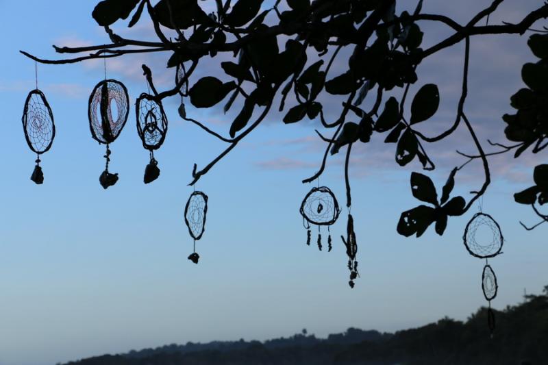 Diğer tarafta bir grup genişçe bir havlu sermiş. Üzerinde kabus kovuculardan yapıp ağaca asıp sergiliyor ve satıyorlar.