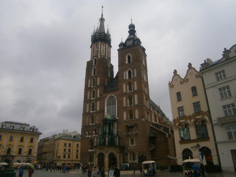 Meydan'da dikkatimizi ilk çeken, hikayesini önceden bildiğimiz, St. Mary's Basilica (Bazylika Mariacka) oluyor. Polonya Gotik mimarisinin en iyi örneklerinden olan Katedral ile ilgili bildiğimiz hikayeler şunlardır. İki kulenin yapımını iki kardeş üstlenir. İki kardeş en güzel kendi yaptığı olsun ister ama bittiğinde uzun olan daha çok beğenilir. Kısa kuleyi yapan, diğer kardeşi bıçaklayarak öldürür. Kullandığı bıçak ise Bazilika'nın karşısında bulunan Kumaş Pazarı Binası'nın girişinde, kapının üst kısmında asılı durmaktadır. İkinci bir başka hikaye ise 13. yüzyılda Krakow'u Tatar istilasından kurtaran şehir muhafızının hikayesidir. Tatar ordularını kuledeki muhafız görüyor ve kapıların kapanması işareti anlamındaki melodi sesini trompeti ile çalarken bir Tatar oku boğazına saplanıyor ve muhafız ölüyor. Günümüze kadar halen aynı melodi kuleden yayınlanıyor ve vurulduğu anda melodinin yarım kaldığı noktada melodi kesiliyor.