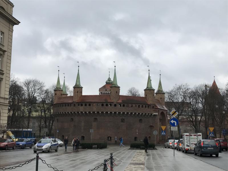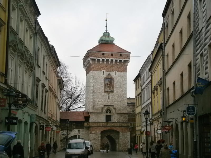 Kapıdan geçtiğimizde kendimizi bir parkta buluyoruz ve önümüzde bir gözetleme kulesi Barbakan Krakowski duruyor. 1498 yılında Gotik tarzda inşa edilmiş olan kule, bir zamanlar şehir duvarlarına bağlanmış ve kente girişlerde burada sıkı kontroller yapılmıştır. Avrupa'da hala ayakta kalabilen üç sağlam karakoldan biridir ve günümüzde çeşitli sergilerle özellikle turistler için cazibe merkezi olarak kullanılmaktadır.