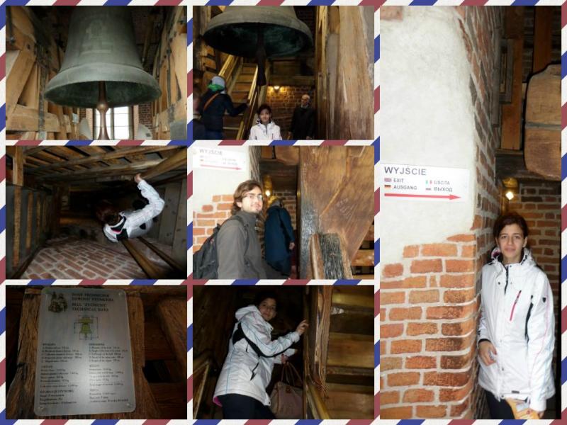 Yukarıda Sigismund Çanları’na çıkmak için dar merdivenlerden çıkarken çekilmiş görüntüler var. En sonda en büyük çan (bu çan eskiden taç giyme törenlerinde çalınırmış) ve harika bir manzara var.