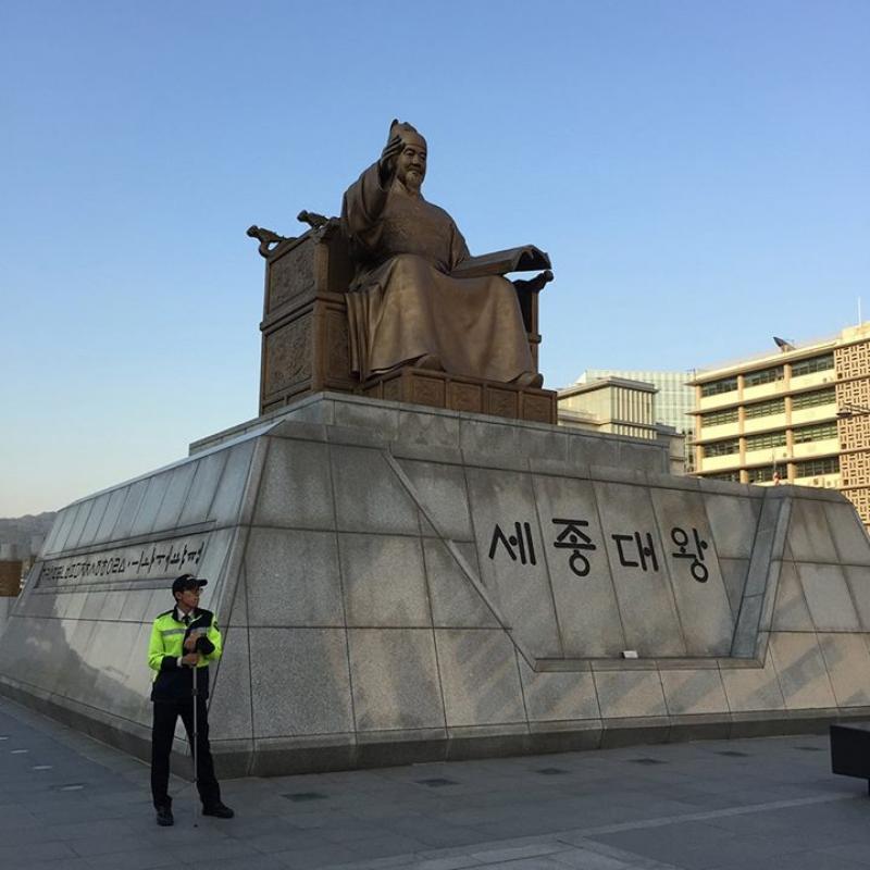 Seul'e gidip de Gyeonbokgung Sarayı ana kapısı önünde yer alan Kral Sejong Heykeli'ni görmeden dönmek olmaz... Kim bu Kral Sejong diyorsanız bana göre bizim için Atatürk neyse Koreliler için Sejong öyle. Okuma yazmanın önemini bileni Koreceyi (Hangıl) ortaya çıkaran ve ülkesi için daha birçok şey yapmış olan bir kral.