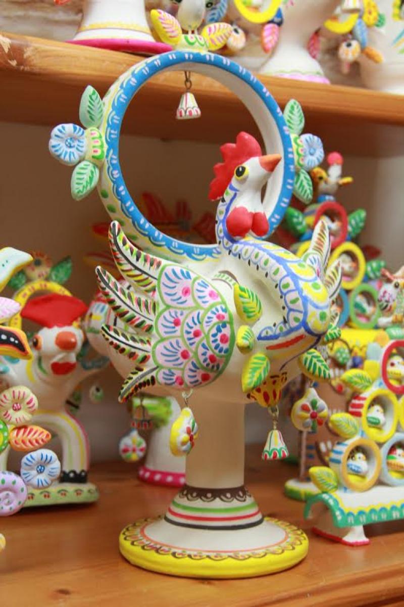 Dükkanın adı: La Bottega Dei Fischietti. Avrupa'da ünlü birçok dergi ve gazeteye röportaj veren teyzemiz ise dünyalar tatlısı. Ününün sebebiyse birçok siyasi liderin ve meşhur kişilerin minyatür biblolarını/düdüklerini yapmış olması. Kendisiyle kısa da olsa muhabbet etme şansı yakaladığıma memnunum. Derken mağazada benim yaşlarda genç bir kız bayrağı devralıyor ve meşhur dükkânı tanıtmaya koyuluyor. Üçüncü bölmeye geldiğimizde tavuklu figürleri görüyorum. Meğer bu tavuklu figürler şans sembolüymüş. Eskiden evlenmeden önce damat adayı, geline bir tavuk figürü hediye edermiş. Böylece bereketli ve mutlu bir evlilikleri olacağına inanılırmış.