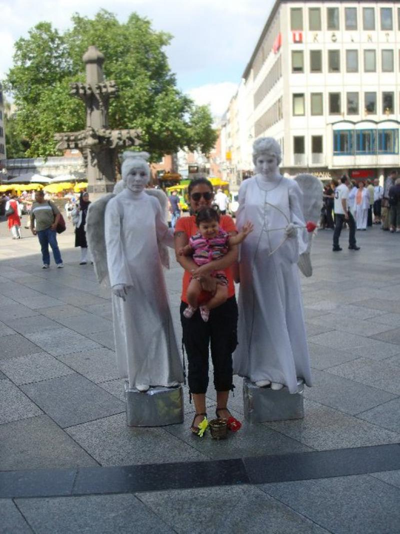 Bir Avrupa şehrine gidip de yok çanı, yok kulesi, yok heykelleri derken boynun tutulana kadar başın havada, ağzın bir karış açık incelemediğiniz katedral oldu mu? Tabii ki olmadı. Tabii Köln’ün de o çok ünlü "Kölner Domm" Köln Katedrali her saat yüzlerce insanın ziyaret ettiği, her duvarından işçiliğin aktığı bir yapı. Tabii Katedral, Köln'ün en önemli turizm merkezi olduğu için önü de panayır alanı gibi. Biz de Köln'deki saatlerimizin çoğunu burada geçirdik. Bu gösteriler Küçük Gezgin’in çok hoşuna gitti. Melekler, gladyatörler, müzisyenler ne ararsan vardı. Bu sokak gösterileri, Avrupa'da turizmin hatta günlük yaşamın en önemli parçası. Konservatuar öğrencileri topluluk önündeki ilk sınavlarını bu meydanlarda veriyor. Bu gösteriler şehrin havasını inanılmaz değiştiriyor, sokaklara ayrı bir ruh katıyor. Her sokak köşesinde buram buram sanat kokusu alıyorsun. İşte bu da insana bir "aaaah" çektiriyor yani... Çektirmiyor desem yalan olur. Onlarda sokak piyanoları her gün bir başka köşeden insanın ruhunu okşuyor. Bizde de gece yarısını geçince kokoreç kokusu ve dumanı sokakları kaplıyor. Kokoreçe bayılırım; ama sokak müzisyenlerinin de hastasıyım; eh o zaman ortaya bir karışık yapsak çok da güzel olmaz mı yani : )