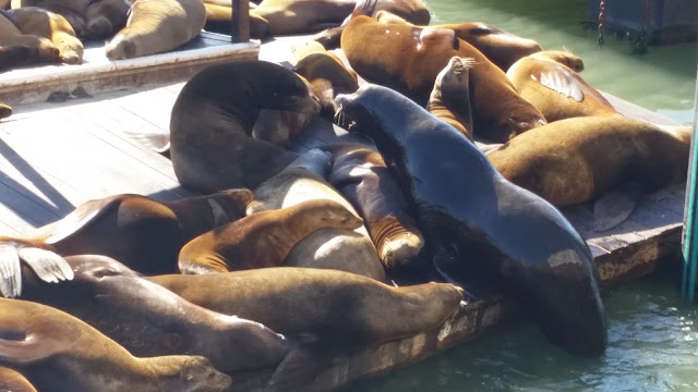 Burası oldukça güzel restoranların yer aldığı liman kısmı. Buraya gidip de yengeç, midye yemeden dönmek olmaz. Çok büyük bir yer değil ama ortasında dönme dolabın da bulunduğu gerçekten çok hoş bir ortam yaratmışlar. Pier 39’a gittiğinde geçireceğin zaman dilimi oldukça uzun oluyor. Kendinizi ona göre ayarlamanızda fayda var. Hele de bizim gibi bir küçük gezgininiz varsa; günün yarısı burada geçiyor uyarmadı demeyin. Bunun en büyük nedeni Kaliforniya denizaslanlarını çok yakından görebileceğiniz yerin, tam da bu limanda olması. Seslerini duyup da oraya doğru koşmaya başlayan Çakıl’a zor yetiştik. Onlar için güneşlenme terasları yapmışlar ve çıkardıkları o komik sesleriyle bizleri kahkahalara boğarken, yüzlercesini bir arada görmek gibisi de yoktu. Nasıl yüzdüklerini, kavga ettiklerini, oynaştıklarını, birbirlerini nasıl suya attıklarını o kadar yakından izleme şansına sahip oluyorsun ki… Bu bize bile bu kadar keyif vermişken Küçük Gezgin’in aldığı keyfi düşünün siz. En hoşumuza giden şey de doğal yaşamlarına hiçbir müdahale edilmemesiydi. Martılar da dahil hiçbir deniz hayvanını beslemenize izin yok. Bir de bu seyirin Golden Gate Köprüsü ve Alcatraz adası manzarası eşliğinde olduğunu söyleyim de; keyfimizin “ooohhh beee” dedirten türde olduğunu daha iyi anlayın :) Meydanda küçük bir akvaryumda var; gitmek isteyenlere duyurulur:) Biz akvaryum keyfimizi Monterey için saklı tuttuk.