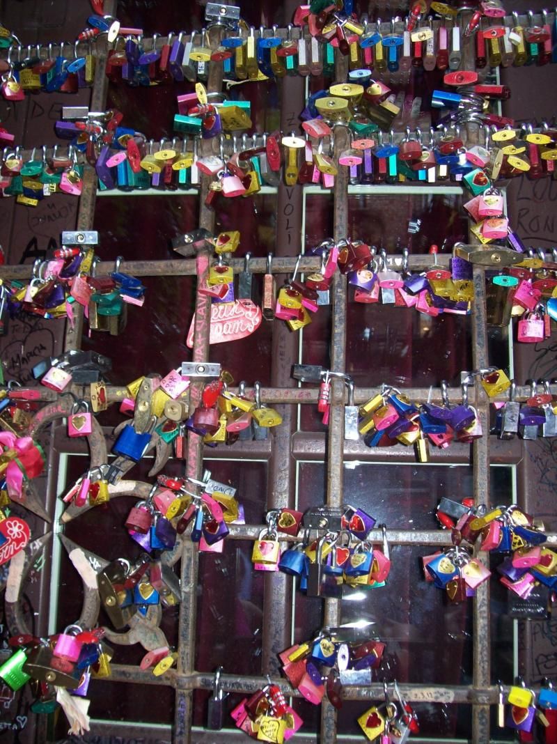 İkincisi demir parmaklıklara dileklerinizi dileyip astığınız kilitler :) Anahtarlarını da Verona'daki Ponte di Pietra (Taş Duvarlı Köprü)'den Adige Irmağı'na atıyorsunuz. Kabul olması dileğiyle .. Aşağıda sizlerle paylaştığım fotoğraftaki pembe kilitlerden biri benim! Eros'a da ilettim ;)