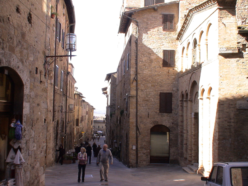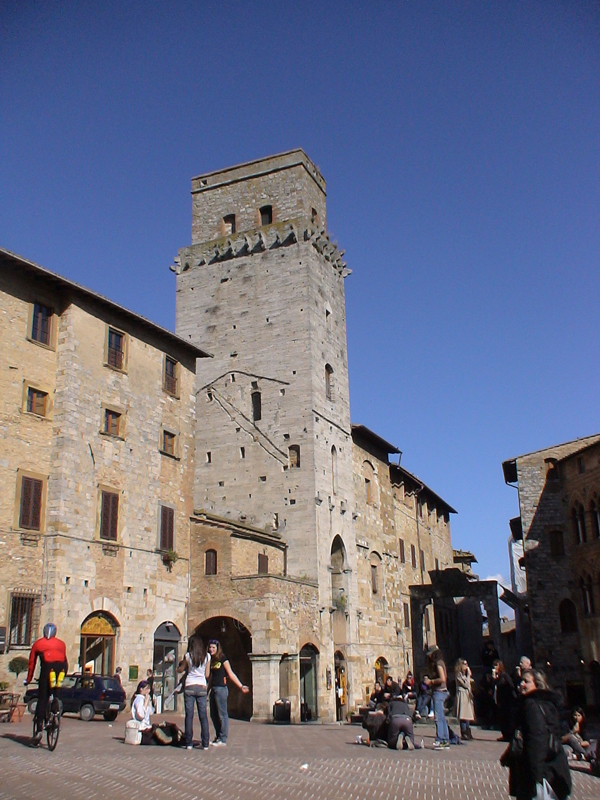 Biz San Gimignano’ya Siena üzerinden ulaşıyoruz. Bu Ortaçağ kasabasının en büyük özelliği 12. ve 13. yy.’lardan kalma kuleleri. Günümüzde bu kulelerden 14 tanesi ayakta kalabilmiş. "Ortaçağın Manhattan'ı" olarak adlandırılan bu kasaba, 18. ve 19. yy.’da gerilemiş olsa da günümüzde halen 14.yy’ın ikinci yarısındaki görüntüsünü korumaktadır. Bu özelliği ile de Unesco dünya mirasları listesinde yer almaktadır.