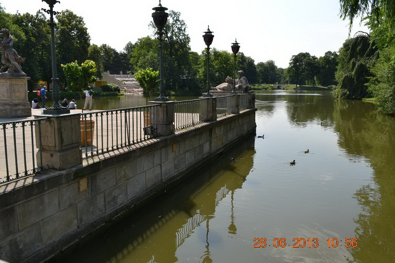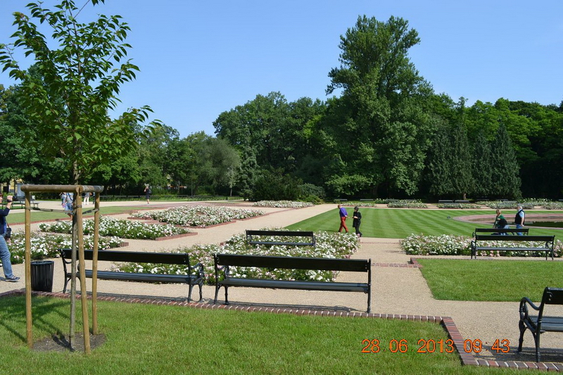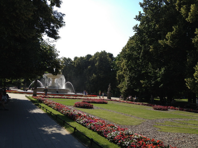Eski şehre gelirken gördüğümüz bir park dikkatimi çekiyor, bir zamanlar bir saray olan bina bombardıman sırasında tamamen yıkılmış, şehir yeniden yapılandırılırken buraya tekrar bir bina yapılmamış ve sarayın oldukça büyük bahçesi park olarak düzenlenerek Varşova halkına sunulmuş.