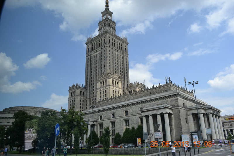 Şehir meydanında Varşova'nın sembolik yapılarından, eski Sovyet Lider Stalin ülkeyi terkederken Polonya ile dostluğunu göstermek için bir anı bırakmak istemiş, halka metro ya da yüksek bir saat kulesi mi istediklerini sormuş, halk metro istediği halde Stalin, belki de herkes görsün diye, bu 230 metre ile şehrin en yüksek yapısı olan saat kulesini yaptırmış.