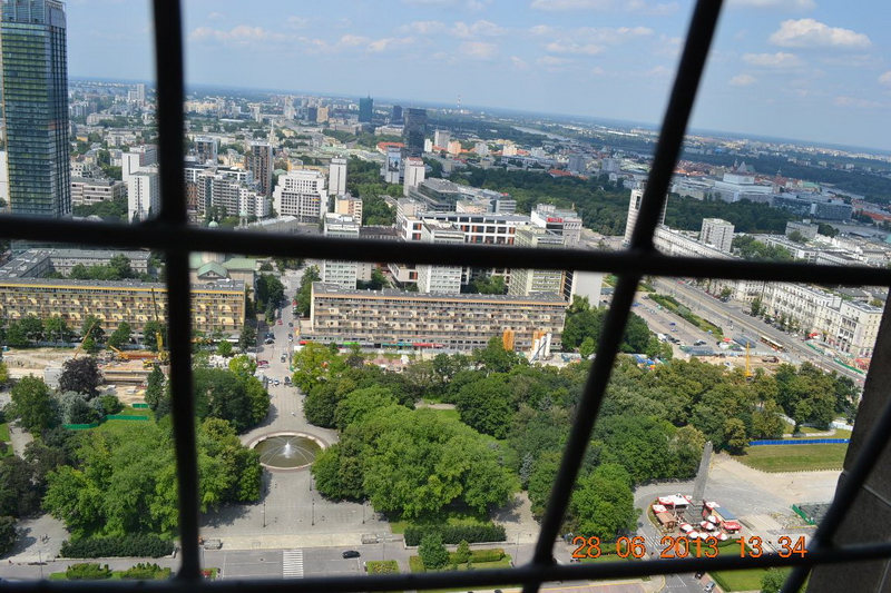Şimdi Bilim ve Kültür Sarayı olan binayı geziyoruz, sarayın kapalı seyir terasına çıkarak 4 bir yanından tüm şehrin panoramik manzarasını, Vistül nehrinin ikiye böldüğü güzel şehri, gezdiğimiz yerleri, parkları ve Old Town’u izlemek oldukça keyifli.