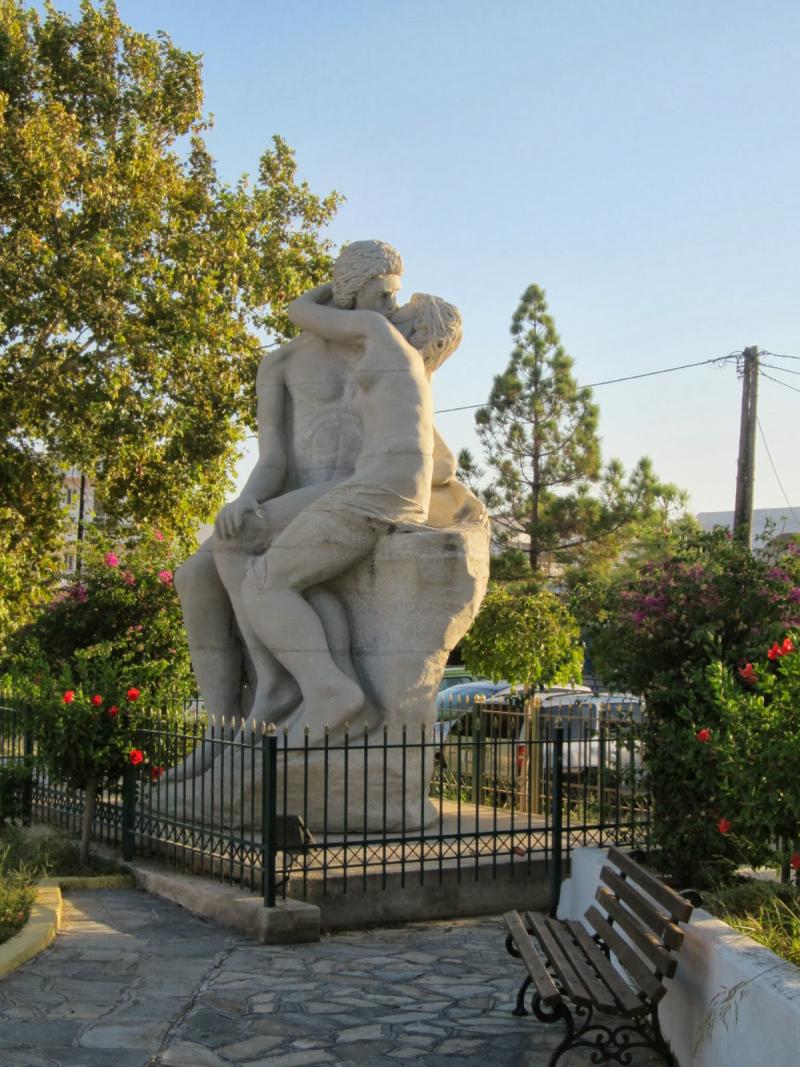 Faliraki'nin ortasında bir parkta güzel bir heykel görüyoruz.