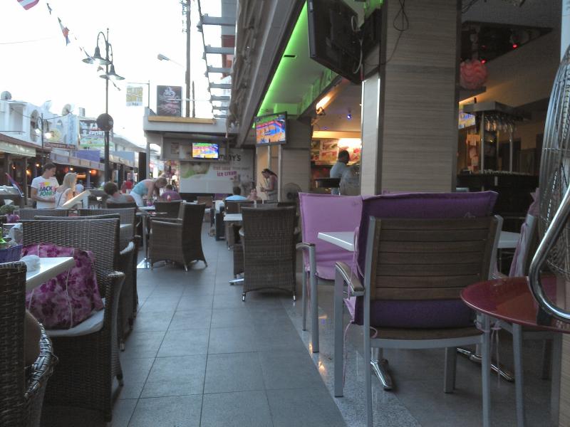 Akşamüstü plajdan çıkıp Faliraki merkezde dolaşıyoruz. Bir yandan da Avrupa Basketbol Şampiyonası 19.00'daki maç için bir sports bar arıyoruz.