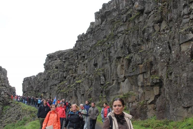 Strokkur Gayzeri’yle birlikte bu üçlüye “altın üçgen” deniyor. Strokkur Gayzeri’nin de içinde yer aldığı Thingvellir aslında bir doğal park alanı. Tepelerinden baktığınızda fay kırığını net olarak görebiliyorsunuz.