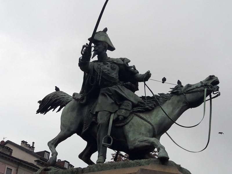 Via Po üzerinde Piazza Castello’ya doğru ilerlerken sol taraftan Via Carlo Alberto’ya girildiğinde yolun sonunda Piazza Carlo Alberto’ya çıkılıyor. Burada iki önemli bina , Biblioteca Nazionale di Torino ve Museo Nazionale del Risorgimento İtaliano karşılıklı yer alıyor. Meydandaki heykelin yerleşimi oldukça ilgi çekici. Genel olarak heykeller, meydanlara yüzlerini dönerler ama burada heykel meydana kelimenin tam anlamıyla ardını dönmüş durumda, yani meydanda durduğunuzda atın arkasına bakmış oluyorsunuz. Bir başka deyişle, at ve binicisi meydana ters dönmüş durumdalar. Bunun pek rastlanmayan oldukça dikkate değer bir durum olduğu söylenebilir. Ulusal Müzenin yer aldığı Palazzo Carignano görkemli bir bina, özellikle de müze binasının arka cephesindeki Piazza Carignano’ya bakan kırmızı cephesiyle bu bina Torino’nun en etkileyici eserleri arasında sayılmayı hak ediyor.Via Cesare Battisti üzerinden Gelleria Subalpina’ya girildiğinde, Piazza Castello’ya çıkılabiliyor.