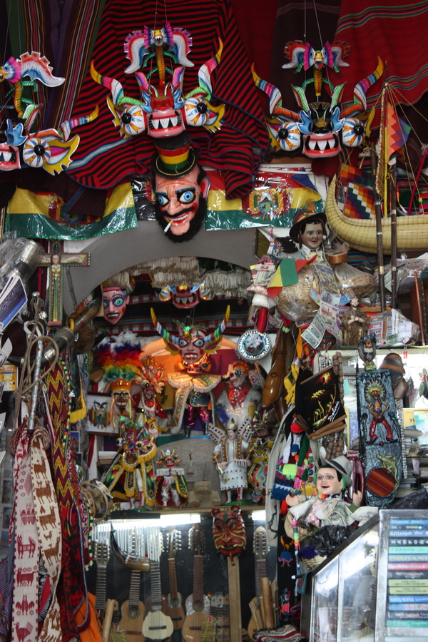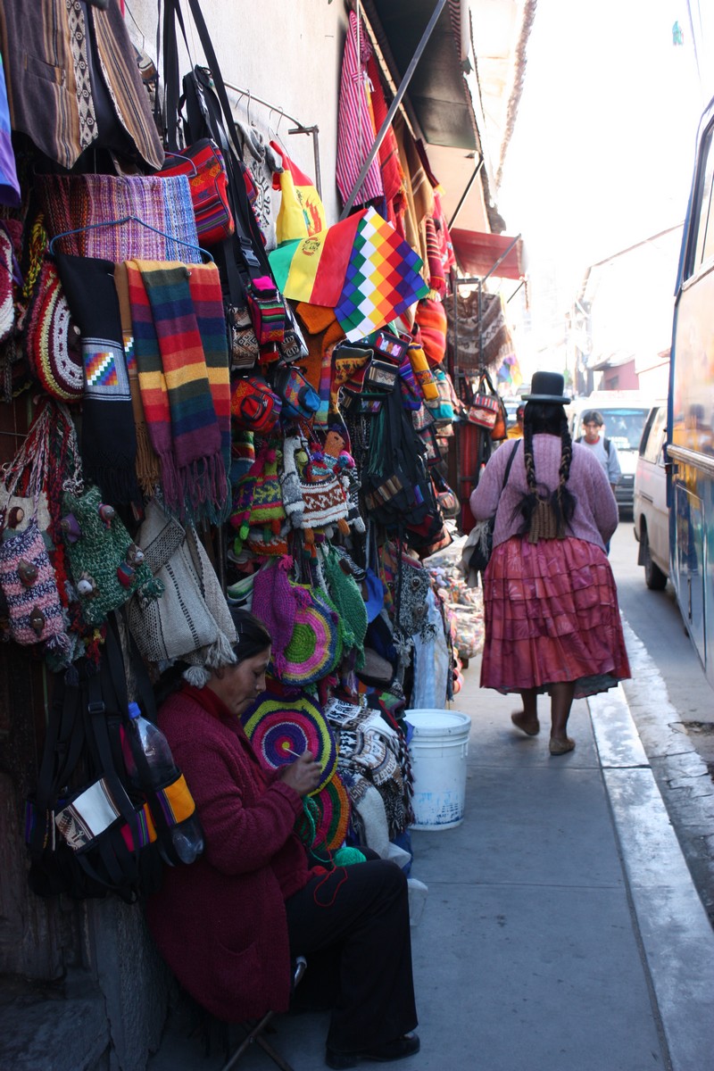 Çarşı olarak anılan bölge aslında tezgahları dışarıya kadar çıkmış olan sömürge döneminden kalma dükkanların sıra sıra dizildiği uzunca bir cadde. Cadde boyunca kafanızı kaldırdığınızda sarkan elektrik kabloları dekorun bir bölümünü oluşturuyor. Tezgahlar rengarenk. Minik heykelcikler, otlar, geleneksel ilaçlatr, çeşitli taşlar, renkli iplikler gibi çeşit çeşit büyücülük malzemeleri süslüyor tezgahları. Bu hayvan heykelciklerinden baykuş aklı, kondor iyi yolculuğu, totem çalışkanlığı, kaplumbağa uzun ömrü, kurbağa zenginliği, güneş sağlığı ve bir çift insan aşkı simgeliyor. Yani neye ihtiyacınız varsa ona göre istediğiniz totemi alabiliyorsunuz.