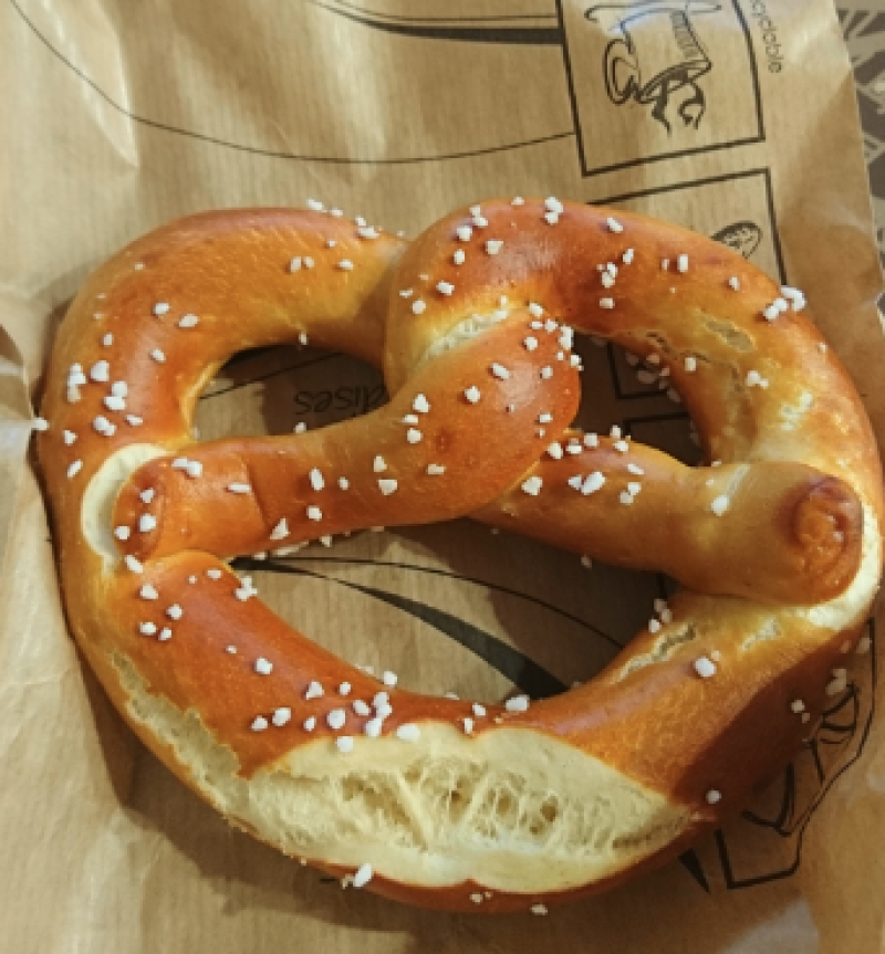 Kahvaltı için çoğunlukla kruvasan tercih ediyorlar, çoğu ülkede olduğu gibi ama adam şeklinde yapılmış hamur kurabiyeleri de meşhur, her pastanenin vitrininde görebilirsiniz. Bizim paskalyaya benziyor tadı sadece biraz daha tuzlu. Ve simit... Üstündeki kaya tuzu muydu neydi anlamadım ama bizimkine göre bir hayli tuzlu bu sebeple aynı lezzeti yakalamak mümkün değil. Carrefour, Fransız markası olmasından kaynaklı birçok yerde marketi de var.