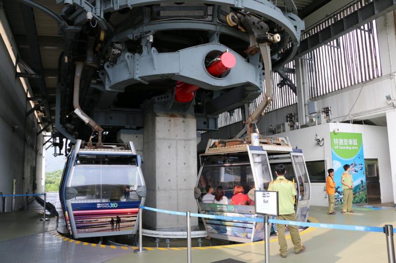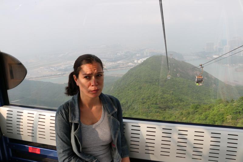 İlk olarak bu teleferiğe binmek için bilet alıyoruz. Standart kabin yani altı düz kabin alırsanız tek yöne kişi başı 105 HKD, kristal kabin (tabanı da dâhil her yeri cam) alırsanız fiyat 165 HKD. Biz de bu bir kez tecrübe edilir deyip kristal kabin alıyoruz.