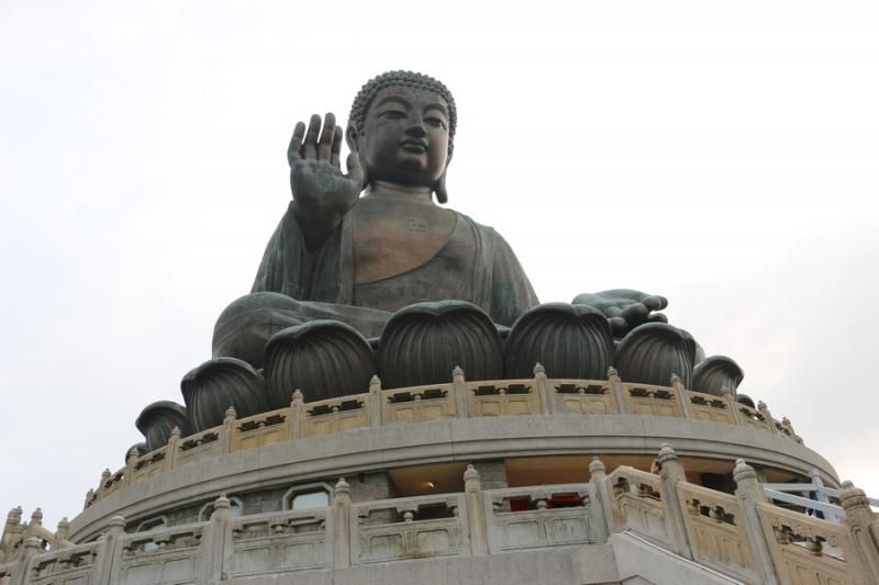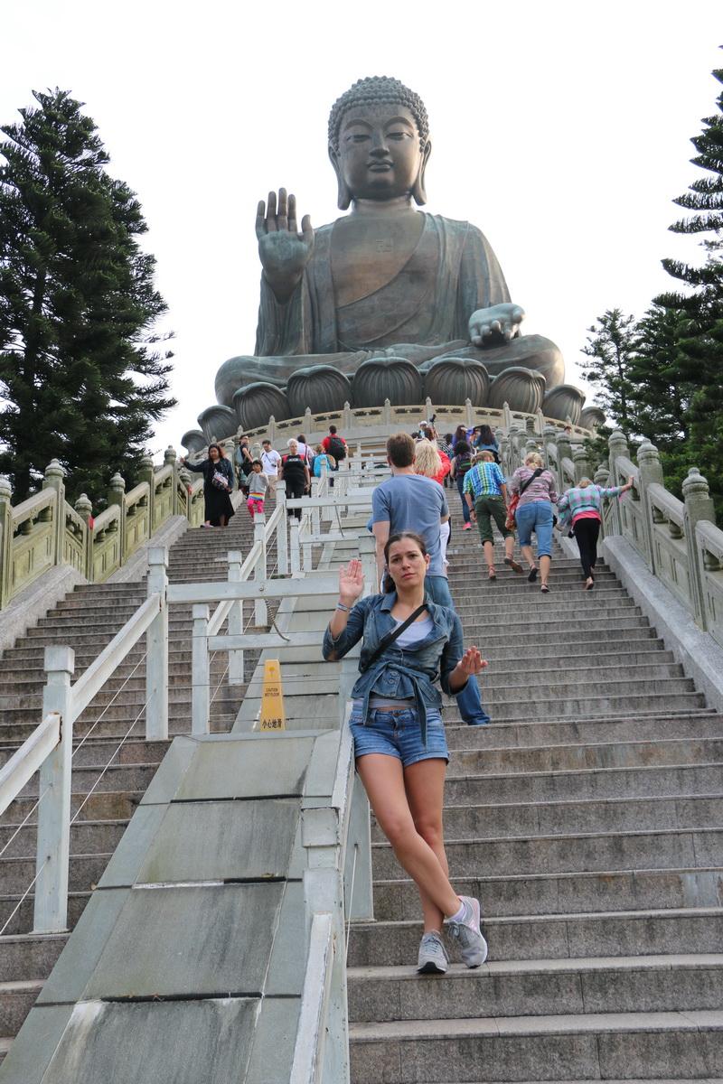 Uzaktan 250 ton ağırlığında ve 34 metre yükseklikte olan Tian Tan Buddha’yı görüyoruz. Bu Buddha heykeli dünyanın açık havada oturur pozisyondaki en büyük bronz Buddha heykeli.