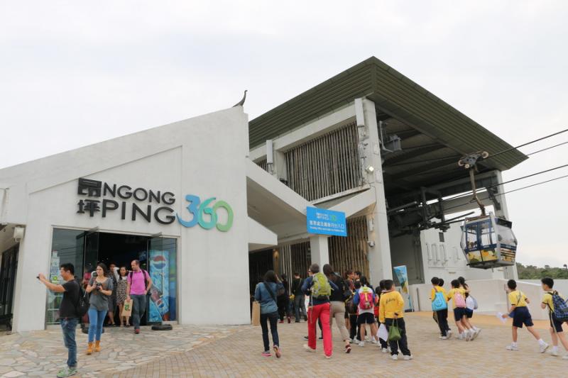 Kasabanın en önemli noktalarından biri Ngong Ping 360 adı verilen teleferik. Bu nedenle kasabaya girdiğiniz gibi farklı ülke bayraklarının renkleri ile boyanmış 10-12 tane teleferik kabinini sergilemişler. Sanki ufak bir açık hava cable car müzesi.