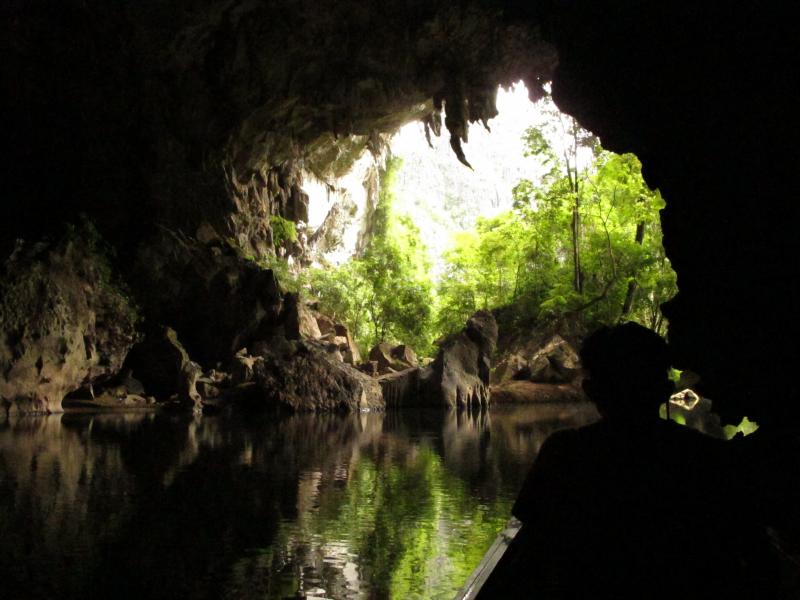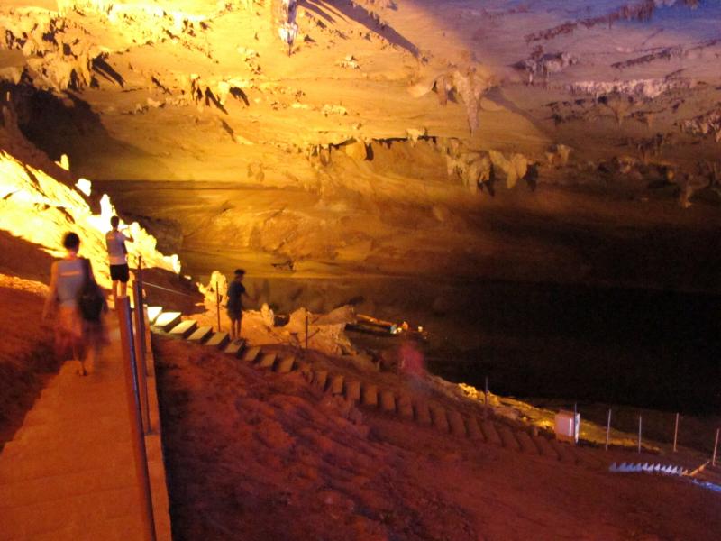 Kong Lo Mağarası içinde uzayıp giden 7,5 kilometrelik bir nehir boyunca botlarla tur atılabiliyor. Mağara inanılmaz görkemli, genelde 30 metre genişliğinde ve kimi kısımlarda tavan yüksekliği 100 metreyi buluyor. Bu devasa ve yer yer ışıklandırılmış ama genelde karanlık mağaranın içinde yaklaşık 8 km boyunca botla seyahat tuhaf hisler uyandırıyor insanda. İki bot, önlü arkalı ilerliyoruz ve kaptanlarımız ışıklandırma olan kimi kısımlarda botları kıyıya çekiyor. Böylece mağara içinde yürüyerek keşifte bulunma şansımız da oluyor. Sarkıt ve dikitler, karanlığın içinde uçuşup duran yarasalar, kafamızda tepe lambalarımızla sağa sola bakınıp duran bizler, sanki bir Indiana Jones filmi içindeyiz : ) Yarım saat kadar mağara içinde oyalandıktan sonra botlarla mağaranın diğer tarafından çıkıyoruz ve küçük bir köye yanaşıyoruz. Burada bir içecek molası veriliyor. Sonra tekrar botlara dönüp yine geldiğimiz yoldan geri dönüyoruz öbür tarafa. Bu arada fark ediyoruz ki bu mağara iki yakadaki küçük köyleri de birbirine bağlıyor. Mağara içinden geçen botların kimisi bizimki gibi turist gezdirme botu. Ama kimisi de köylülerin ulaşım için kullandıkları bot-taksiler.