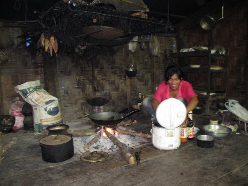 Kong Lo Mağarası’nı ziyaret etmek isteyenler için iki ana konaklama seçeneği var. Ya Kong Lo Mağarası’na yaklaşık 1 saat mesafedeki, daha büyük yerleşim yerleri olan Ban Khoum Kham veya Tha Khaek’te kalabilirsiniz ya da bizim yaptığımız gibi Kong Lo Köyü’nde misafir olabilirsiniz. Otobüsümüz Tha Khaek’in içinden geçiyor ve bir kısım yolcu burada iniyor ama biz son durak olan Kang Lo Köyü’ne kadar (Ban Kong Lo) devam ediyoruz. Otobüs önceden anlaşmalı olduğu, köyün tek büyükçe konaklama tesisi sayılan bir pansiyonun önünde duruyor. Ama biz “homestay” olarak bilinen, köyden bir ailenin evinde kalma olayını denemek istiyoruz. Gel gör ki bu aileyi nereden bulacağız? Bizimle otobüsten inen turistlerden bir grup hemen bu pansiyona yerleşiyorlar. Biz biraz oyalanıyoruz pansiyonun önünde, kime gidip ne soracağımızı bilmeden. Birkaç dakika geçmeden yanımıza güler yüzlü genç bir kadın yaklaşıyor. Bildiği tek İngilizce “Sleep, eat?” (Uyku, yemek). Evet diye kafa sallıyoruz, beni takip edin der gibi bir işaret yapıyor, düşüyoruz peşine. Az ilerideki köyün caddeye yakın kısmında bir bungalovun önünde duruyoruz. Beklediğimiz gibi bir aile evinde kalmayacağımızı öğrenince biraz hayal kırıklığına uğruyoruz, bu derme çatma bungalov sadece turist misafirler için yapılmış. Ama akşam yemeği ve sabah kahvaltısını bu ailenin evinde yiyeceğimizi öğrenince en azından ucundan görmüş olacağız ev misafirliğini, n’apalım diyerek kabul ediyoruz bu bungalovda kalmayı (Akşam yemeği ve sabah kahvaltısı dâhil gecelik bungalov fiyatı ise sadece 5 Euro!). Bizi buraya kadar getiren rehberimiz aynı zamanda bu bungalovların sahibi olan köylü ailenin annesi. Akşam yemeğini pişireceği kendi evlerini gösteriyor bize ve saat 19.00′da onlarda olmamızı söylüyor. 1-2 saat köy ve civarında dolaşıp, yaklaşık 10-15 dakika yürüme mesafesinde bulunan Kong Lo Mağarası’nın girişine dek yürüyüp sonra akşam yemeği için köye dönüyoruz. Bize gösterilen eve vardığımızda ev sahibimiz bungalovun mutfak olarak düşünülmüş köşesindeki ocağın başında yemek pişirmeye oturmuş bile. Bir süre evin küçük çocuklarıyla oynayıp evin babası ile biraz iletişim kurmaya çalışıyoruz. İngilizce konuşamadıklarından ne yazık ki sohbet etme imkânımız pek olmuyor. Yemek son derece basit ama lezzetli: pirinç ve sebze yemeği, önden sebze çorbası. Bu arada bizimle aynı otobüsle buraya gelmiş olan 4 kişilik bir sırtçantalı grubu da bize katılıyor; 18-20 yaş arası Avusturalya ve Kanadalı gençler. Akşam yemeğini birlikte yiyor ve ertesi sabah saat 7.00′de kahvaltıda buluşmak üzere sözleşip odalara çekiliyoruz.