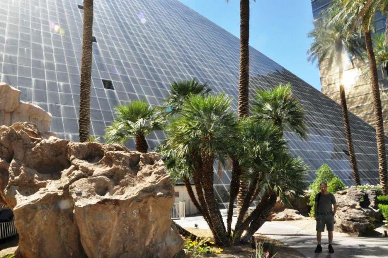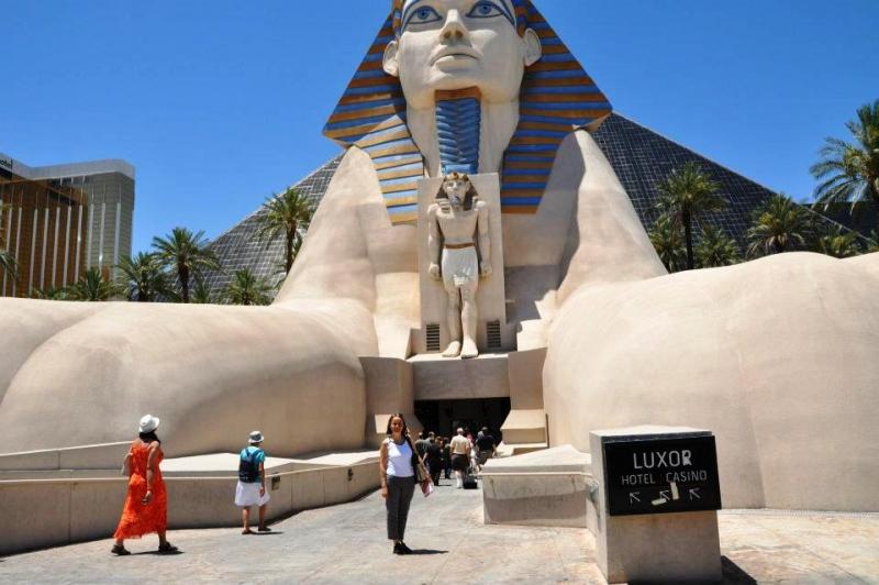 Luxor Hotel'in de mimarisi çok etkileyiciydi. Bir piramidin içi hem otel hem restoranlar hem mağazalar ile donatılmıştı. İçeride kafanızı kadırıp bakınca gördükleriniz gerçekten etkileyiciydi.