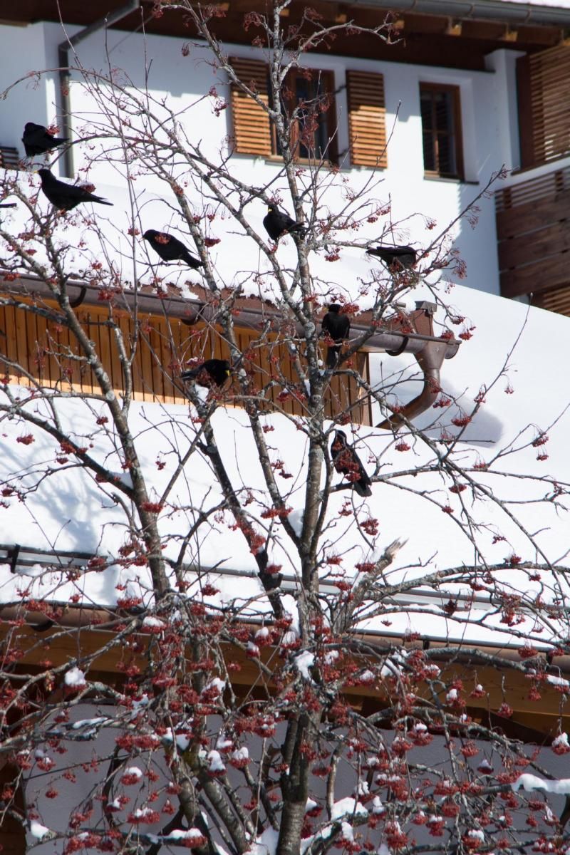 Benim gibi kayak yapamıyorsanız da Lech’te yapılabilecek bir sürü aktivite var. Benim en çok keyif aldığım, uzun yürüyüşler yapmak… Hele hava da güneşli ise inanılmaz keyifli oluyor. Güneşli havada etraf bembeyaz iken güneşlenmek ise hakikaten harika bir duygu. -12 derecede bile içinizi ısıtan güneşe kendinizi huzur içerisinde teslim edebiliyorsunuz. Kuşlar bile bu güneşli günün keyfini çıkarırcasına ağaçların üzerlerine dizilmişlerdi.