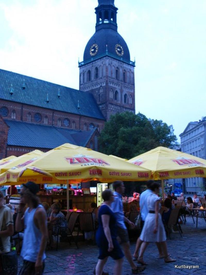 Tamam, yemekler çok yağlı. O zaman sizi merkezdeki “Dada” Moğol lokantasına götüreyim. Wagnera Caddesi'ndeki bu lokantada tabağınıza doldurduğunuz sebze ve etleri pişirip getiriveriyorlar. Ben çok doyduğum için almayayım, aranızda vejetaryen varsa (ama yumurta ve süte hayır demeyecek) onu da Vilhems Pankukas'a bırakıp geri geleyim. Burada yirmiye yakın krep, pancake ve börek çeşidini gözünüzün önünde yapıp, hemen servis ediyorlar. Özellikle sabah kahvaltısı civarı dolu oluyor, ana müşteriler Rigalı. Elmalı krep, kefirle iyi gidiyor ya da bu kadar yedikten sonra bana öyle geliyor. Siz yerken ben de Doma Meydanı'nda takılayım biraz. Bu meydan günün her saati oldukça hareketli; bira bahçeleri, kafeler, katedrale gelenler... Tam oturup seyretmelik… Ne Preblemu (Sorun yok)'nun garsonları geyik muhabbeti seviyorlar, kahve içerken şehirle ilgili gerekli-gereksiz bilgi isteyenlere tavsiye edilir. Herhalde etraftaki masaların boş olmasından da cesaret alarak benim garson verdi veriştirdi İngiliz turistlere; bekârlığa veda partileri için gelenlerin şehri bozduğundan, striptiz kulübü ve kadın ticareti işlerine dalan mafyanın da palazlandığından yakındı. Sonra başka bir masaya oturan İngilizlere hizmet etmek için yollanıverdi.
