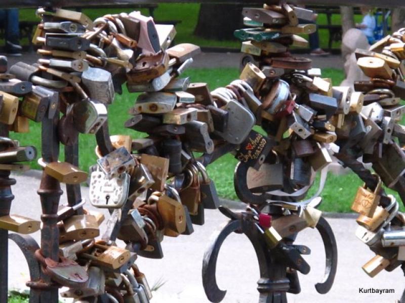 Hemen ilerideki parktaki bir yazıya göre de evlenen her çiftin üzerlerine isimlerini yazdırdığı bir kilidi bir köprüye kitlemesi geleneği de Letonya'dan çıkma… Not edip, güneye yürüyoruz.