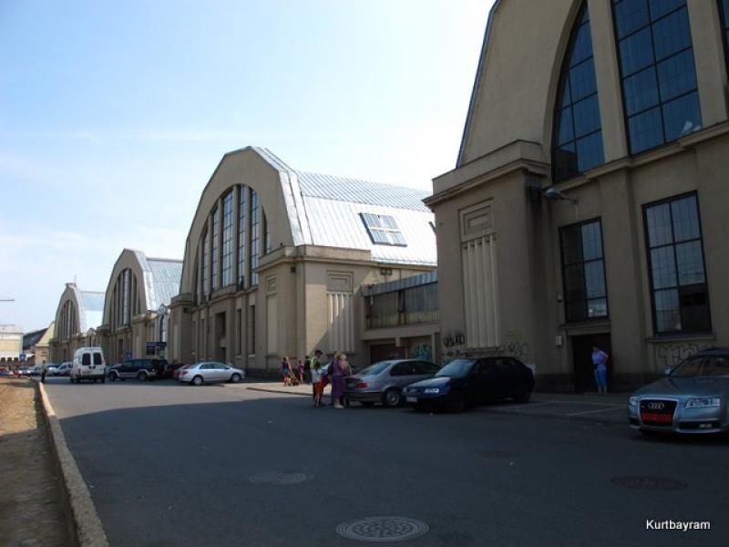 Otobüs istasyonunun hemen karşısında, eski şehrin güneyinde Riga'nın en büyük halk pazarı var. Soğuk kış aylarında açık havada satış yapma sorununu, Sovyetler zamanında Doğu Almanya'dan sökülen dört zeplin hangarıyla çözümlemişler. Hangarlar 60 yıl sonra halen kullanımda…